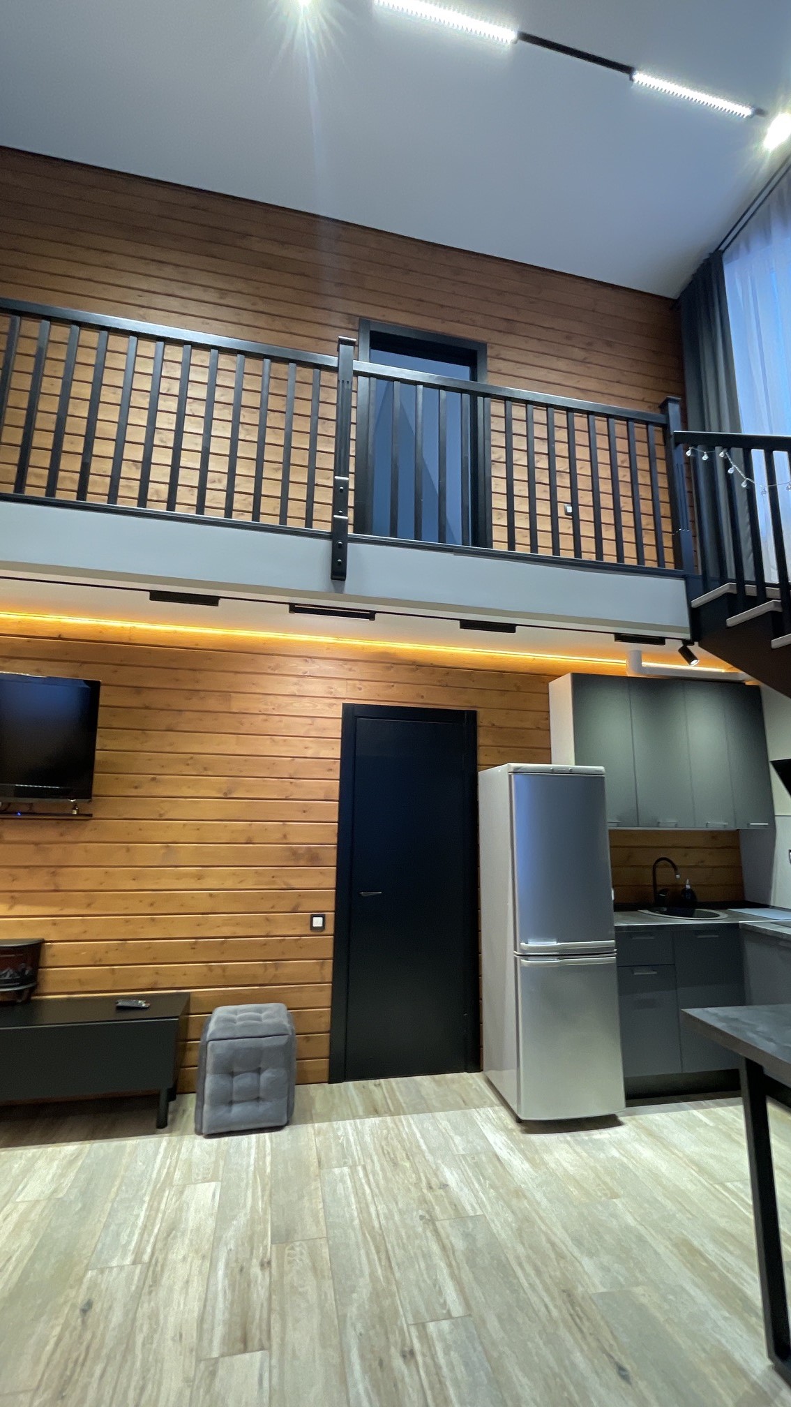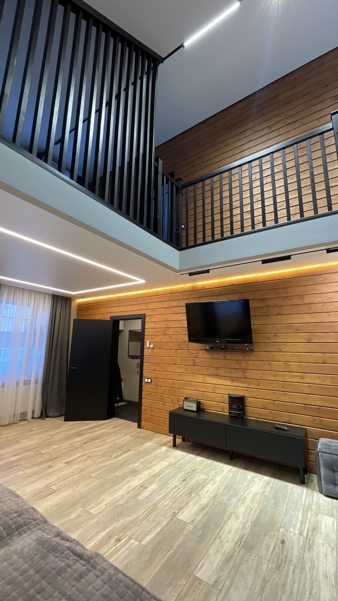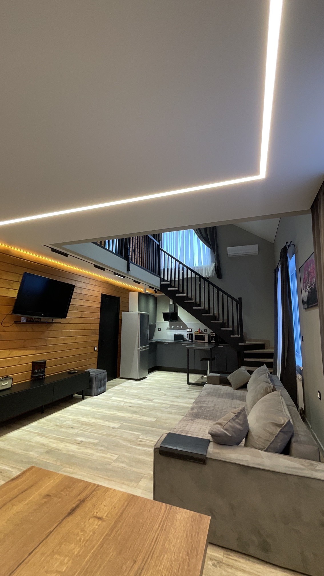 Тут нам удалось вместить большой 3-х метровый диван, на котором с легкостью разместятся четверо взрослых гостей!