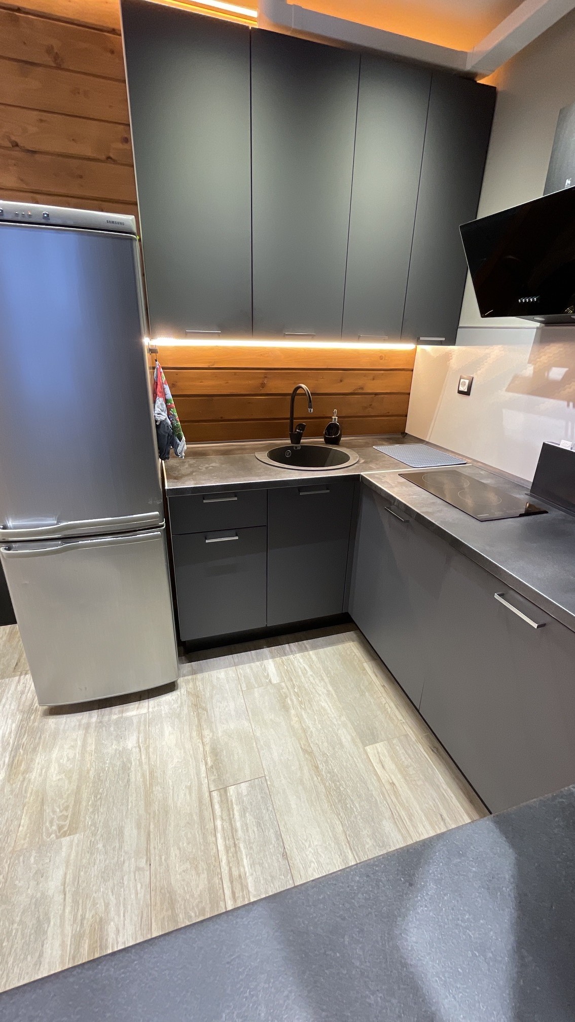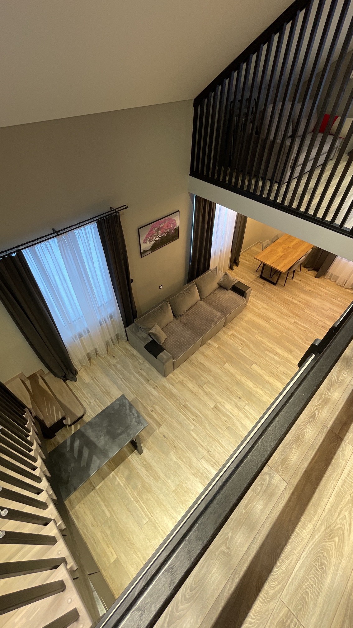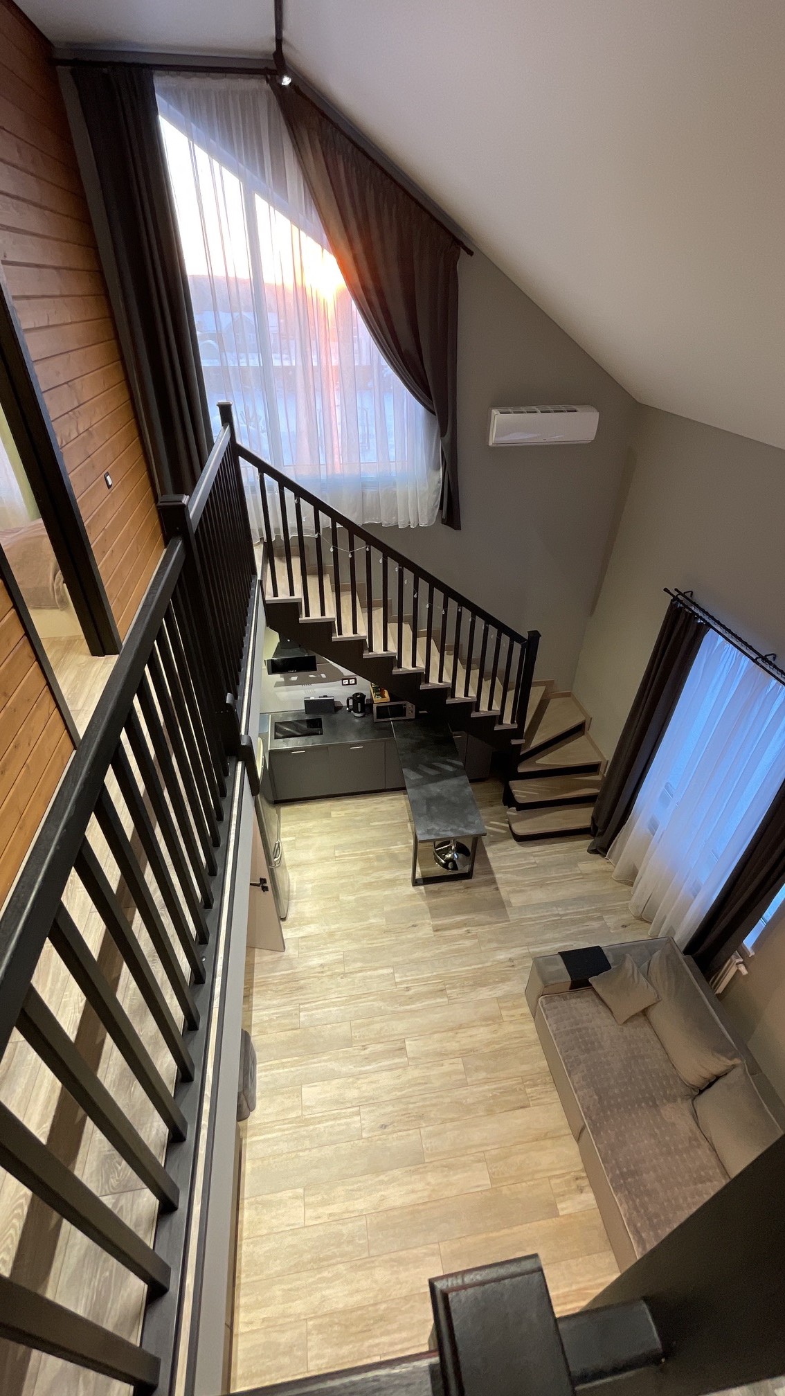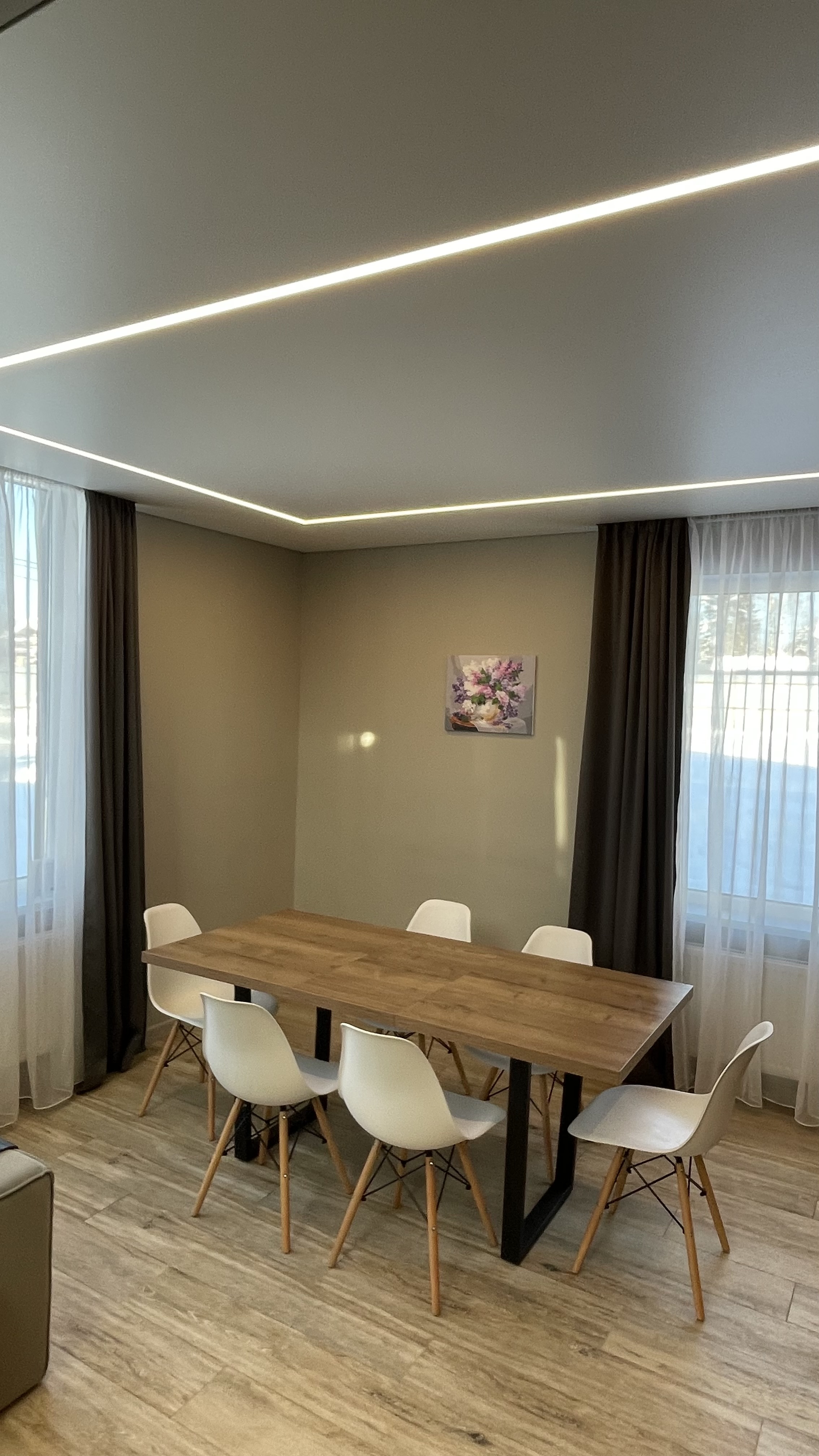 Тут нам удалось вместить большой 3-х метровый диван, на котором с легкостью разместятся четверо взрослых гостей!